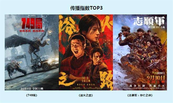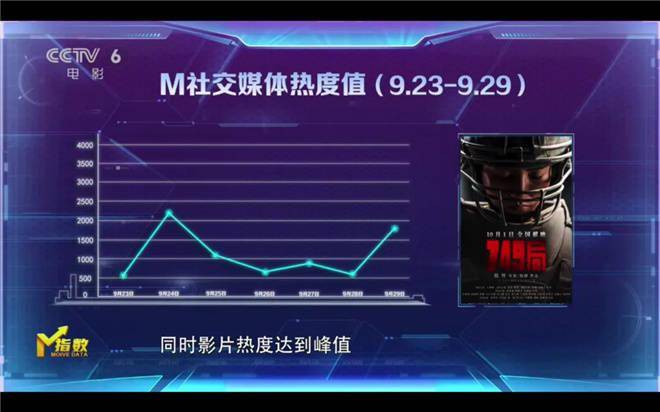 热度方面,随着国庆档开启,5部国庆档新片一举登上M指数影片传播热度榜单。其中《749局》9月24日开启预售,同时影片热度达到峰值,预售目前已经突破5000万。#749局里有什么#、#749局把神秘感玩明白了#等话题迅速登上热搜。