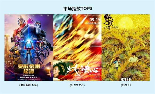 市场表现方面,9月27日上映新片《变形金刚:起源》登顶“M指数-市场榜”。该片自首映以来,凭借强合家欢属性及优质口碑,首周末票房产出3450万,在本周总票房中占比17.16%。