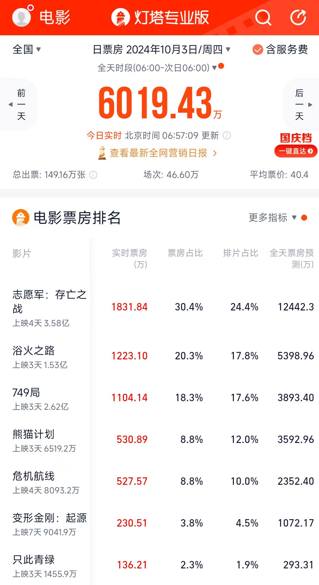 上映第三天,电影《浴火之路》票房突破1.5亿,排在国庆档第三名。