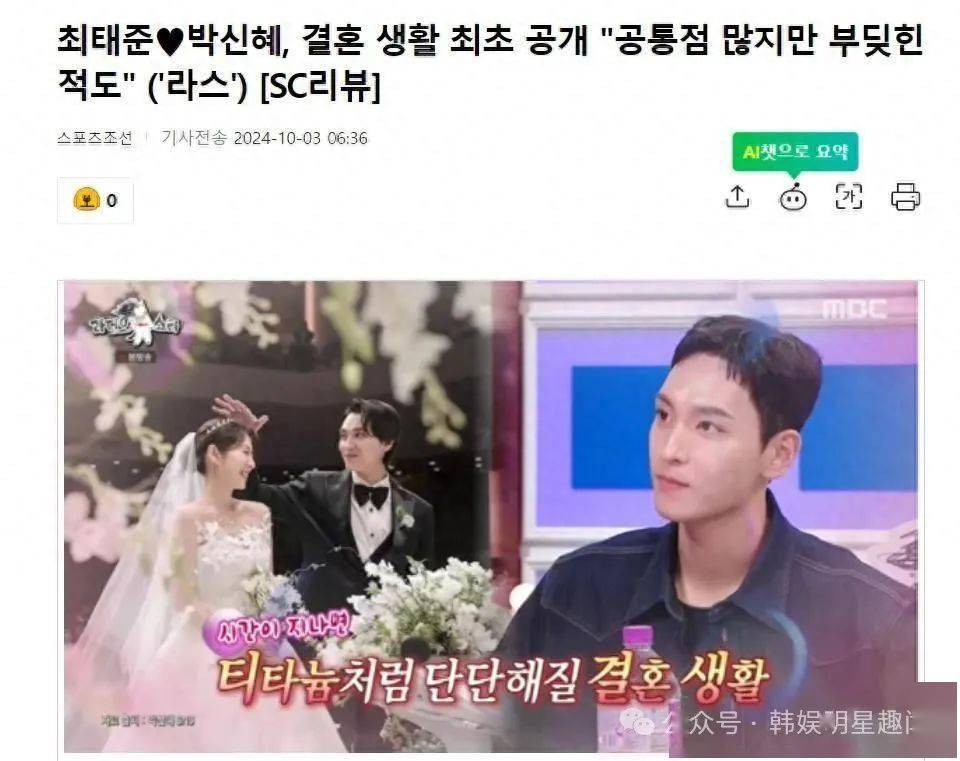 韩国知名男星,演员崔泰俊,公开了与妻子朴信惠的婚姻故事。