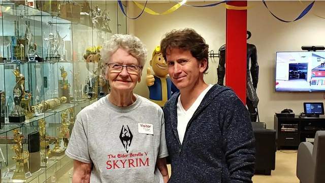 (图,雪梨奶奶与B社制作人Todd Howard合影)