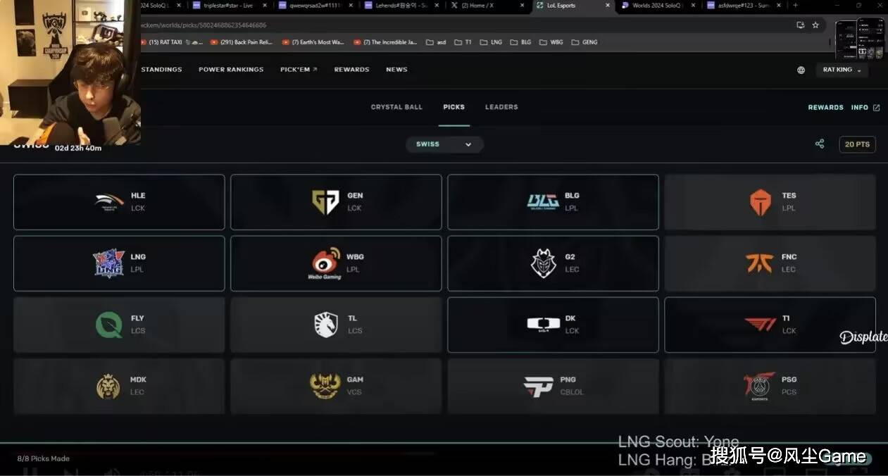 TheShy知名粉丝欧刚,在近日直播时,预测了今年世界赛的八强名单,最开始他选中了LPL和LCK的八支战队,但没有LEC的队伍出线,他又觉得不合理,因为G2是铁定能晋级的,于是欧刚将原本TES晋级八强的预测,改成了G2战队晋级,滔搏哥就成了LPL和LCK,唯一没出线的队伍。