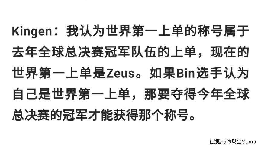 英雄联盟S14全球总决赛,瑞士轮正赛,再有一天就开打了,BLG上单选手Bin,在近日接受采访时,认领世界第一上单的言论,引发了一阵争议,不少LCK选手,都在采访时回怼Bin,DK上单Kingen,S12世界赛的FMVP直言:Bin要夺得今年世界赛冠军,才能获得世界第一上单的称号。
