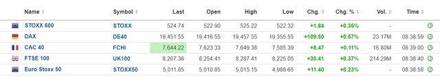 周二,欧洲主要指数悉数上涨。截至发稿,欧洲斯托克600指数涨0.35%,德国DAX指数涨0.57%,法国CAC40指数涨0.11%,英国富时100指数涨0.37%,欧洲斯托克50指数涨0.23%。