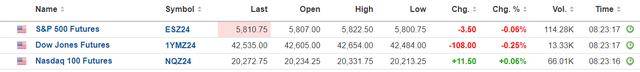 截至发稿,标普500指数期货跌0.06%,道指期货跌0.26%,纳斯达克100指数期货涨0.06%。