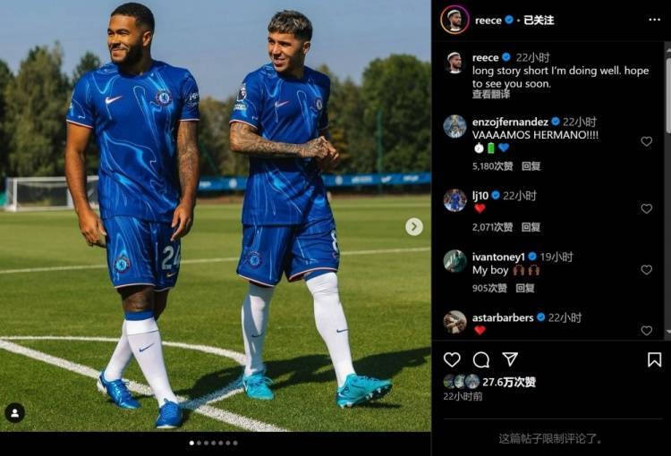 恩佐、伊万-托尼和里斯-詹姆斯的妹妹劳伦也在评论区为他加油打气。