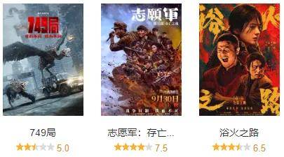 10月2日,在豆瓣平台,国庆档电影相继开分,《志愿军:存亡之战》拿下了7.5分,就目前来看,口碑已超越了上一部作品《志愿军:雄兵出击》。