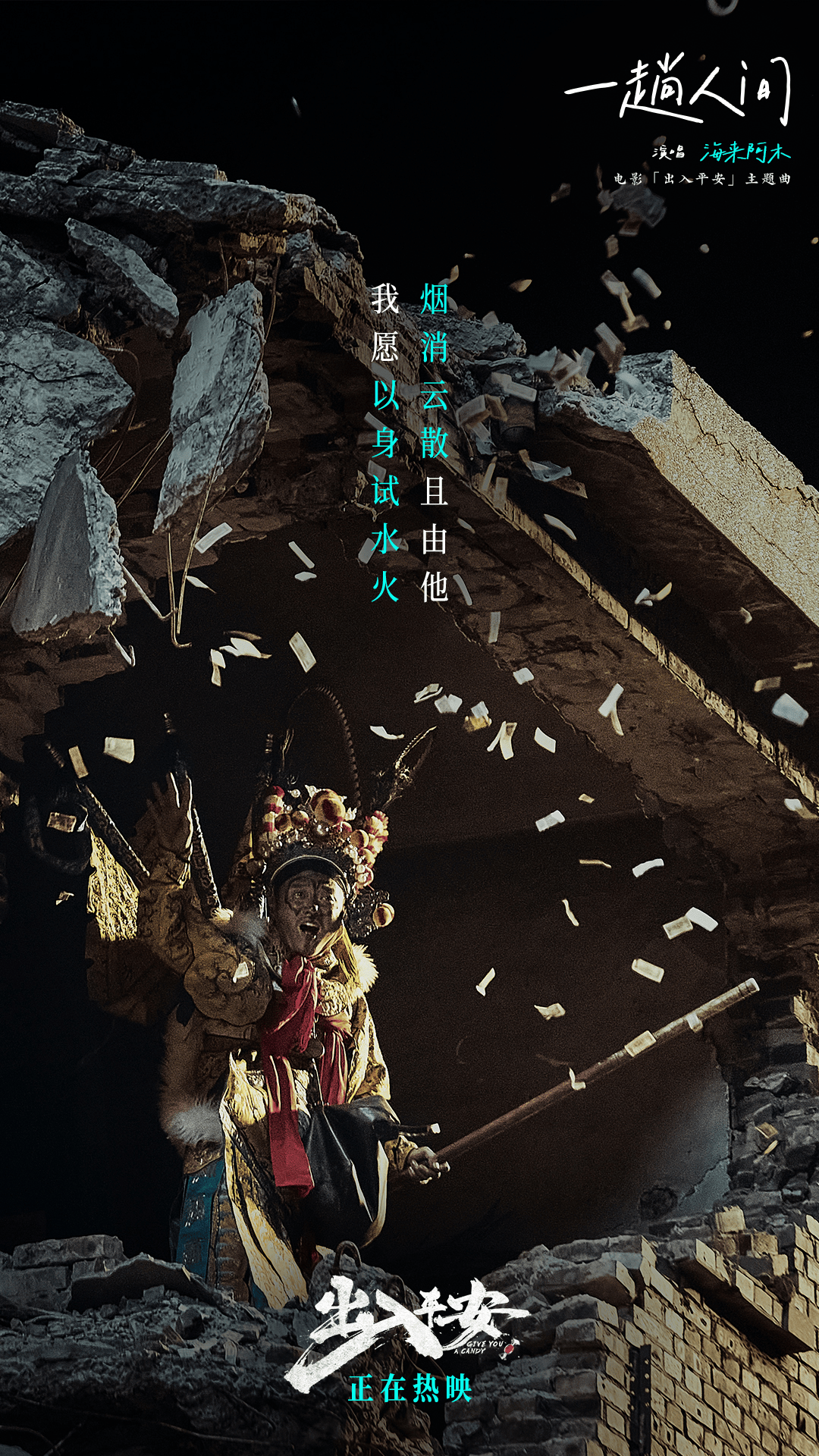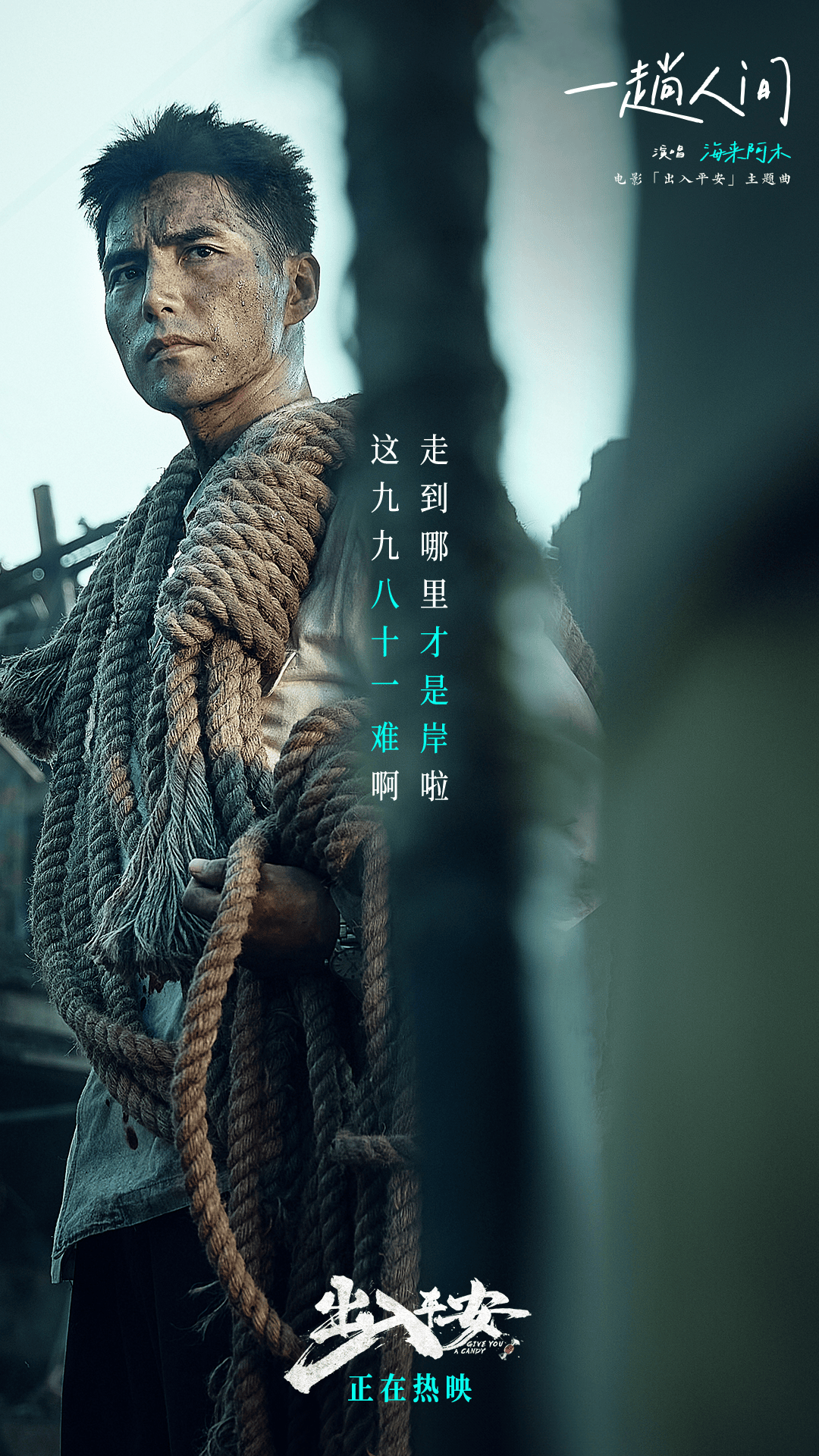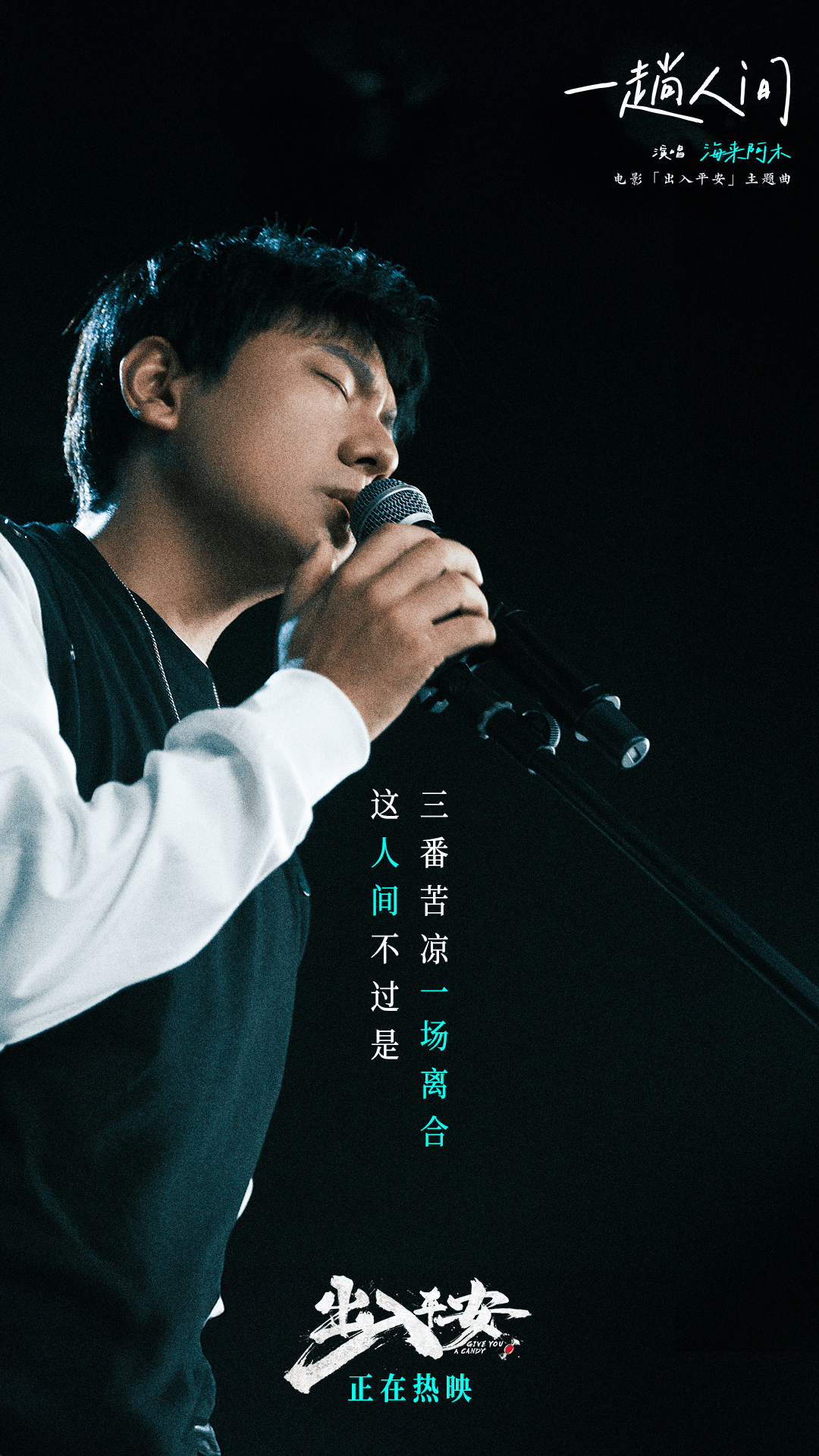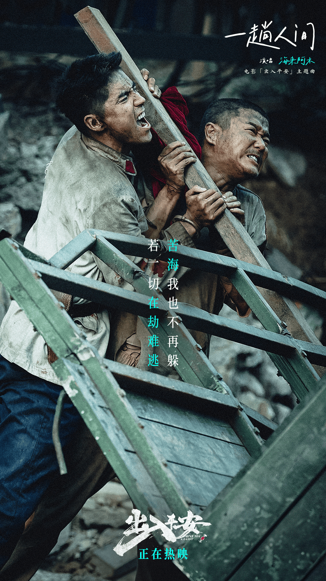 电影《出入平安》主题曲《一趟人间》由实力唱作歌手海来阿木倾情献唱,歌曲以郑立棍(肖央 饰)的视角出发,豪情唱响他化身孙大圣想要救苍生的壮志凌云。“迎着风去怒吼 泪里抬起戴金箍的头”唱的是死刑犯郑立棍因犯错而悔恨的心绪;“我要撕碎生死簿 掣棒济苍生”对应以他为首的救援队,排除千难万险努力救人,敢于天灾抗争、誓与死亡搏命的无畏;海来阿木以磁性的嗓音唱出“我要冲天叫板 撞个大窟窿”,关于郑立棍一行人英勇救人的热血,被其演绎得淋漓尽致。
