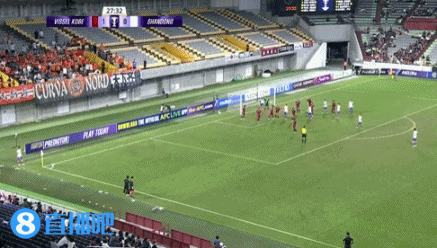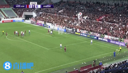 第27分钟,泰山角球机会,克雷桑头球接力扳平比分,山东泰山1-1神户胜利船。↓