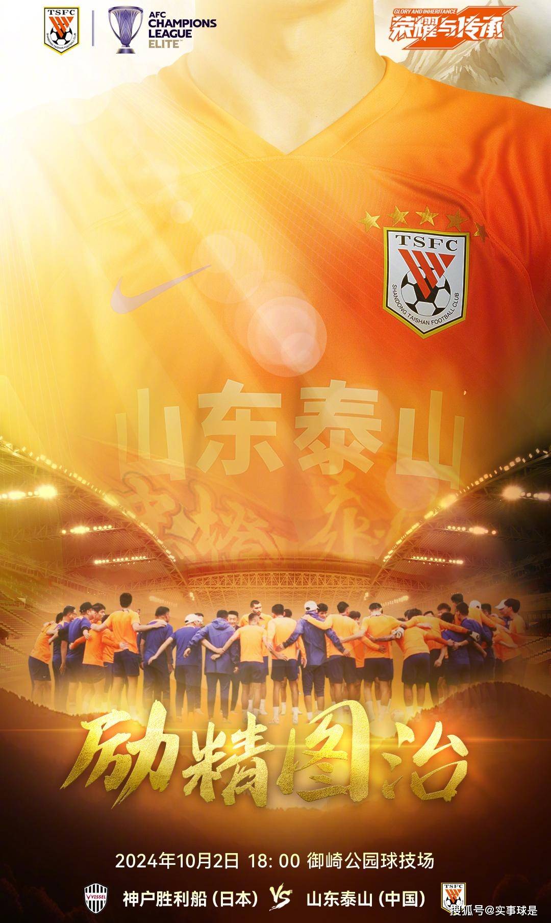 北京时间10月2日18:00,在2024/25赛季亚冠精英联赛第2轮中,中超豪门山东泰山将奔赴客场御崎公园球技场,挑战日本J联赛劲旅神户胜利船。赛前,山东泰山足球俱乐部发布了此役的赛事海报,主题为:励精图治。