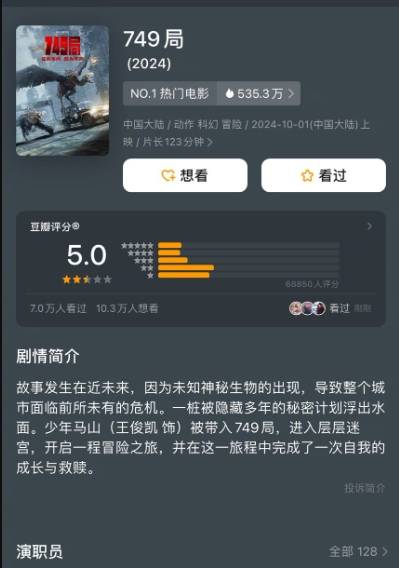 而其他网友则表示,票房高低更多的是由影片的营销推广和口碑效应所决定,豆瓣评分只是其中的一个参考因素。对于《749局》的低分,也有人认为这部电影的制作水平和内容确实存在一些问题,因此评分并不冤枉。相比之下,《志愿军2》和《浴火之路》在豆瓣的评分更多是因为剧情和影片质量得到了更多观众的认可。