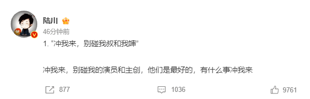 10分钟后,陆川再次发文回应,称:“老话‘爱之深,责之切’就是爱得越深,要求越高,责备得越狠,家人往往如此。所以反向推断,昨天是被家人深深爱着的一天。”