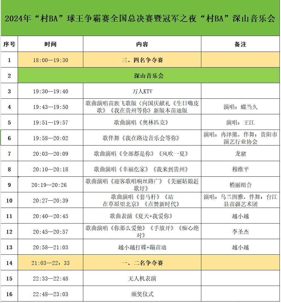 10月4日,2024年“村BA”球王争霸赛全国总决赛暨冠军之夜“村BA”深山音乐会来啦!