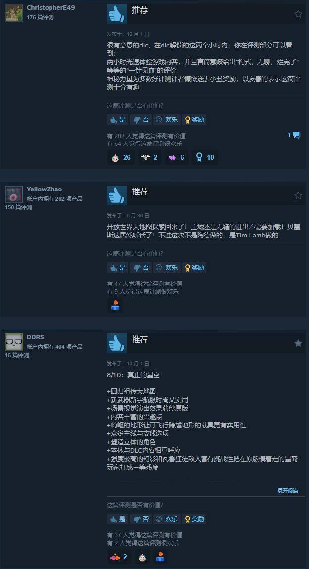 截至IT之家发文,这款游戏的评价为“褒贬不一”,629 篇用户评测中有 43% 为好评。“推荐”玩家认为这是“很有意思的 DLC”“开放世界大地图探索回来了”。