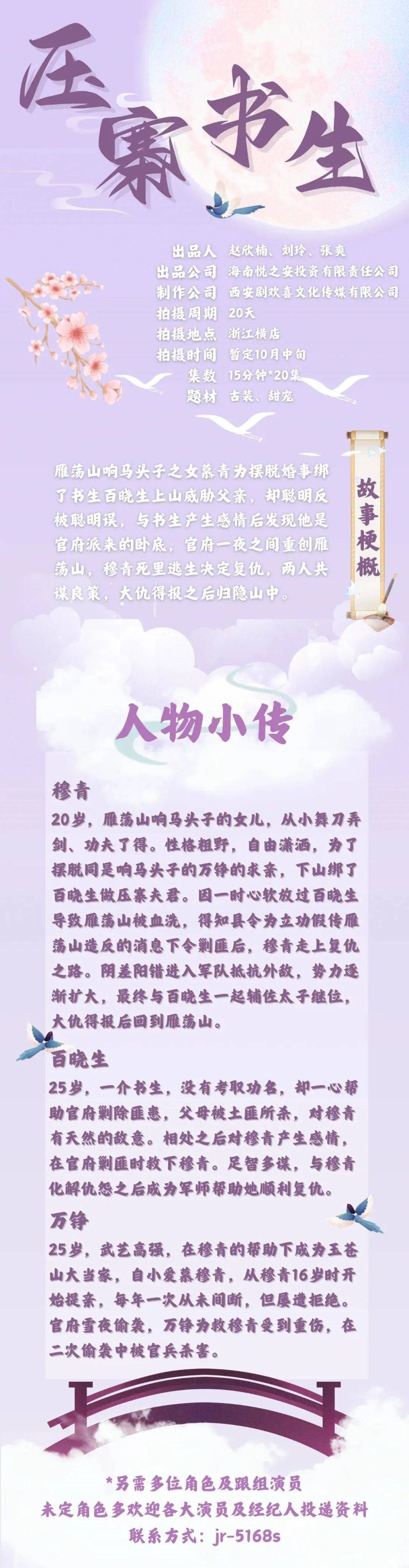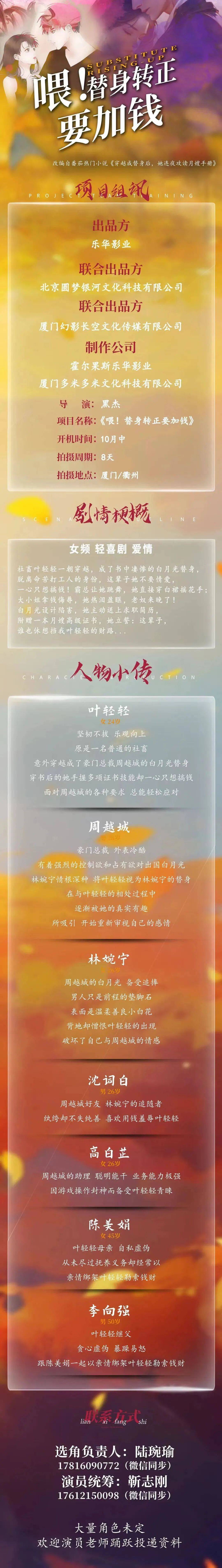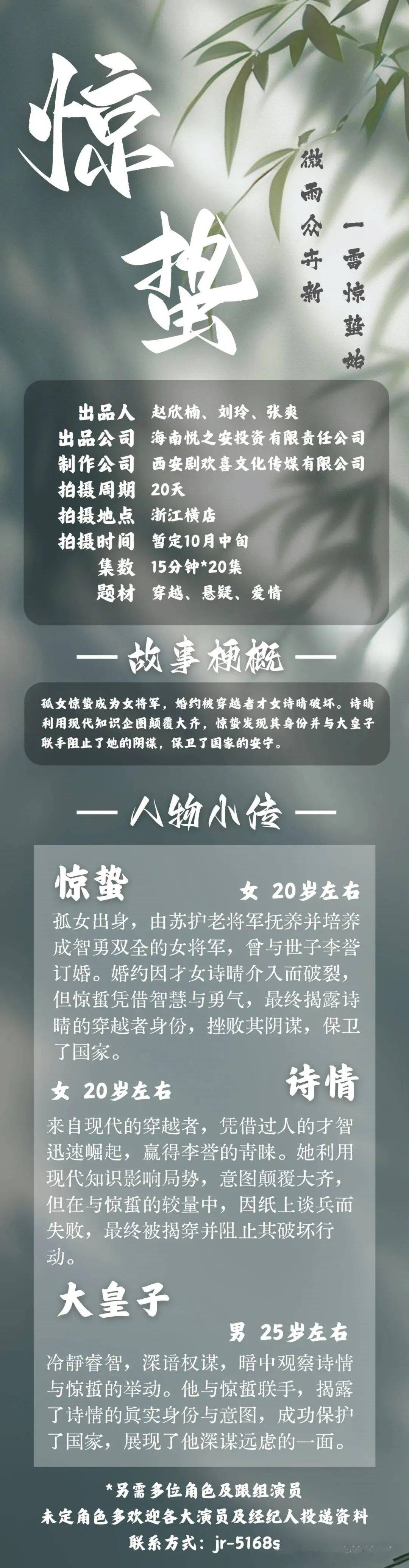 大量角色未定,欢迎演员老师踊跃投递资料。