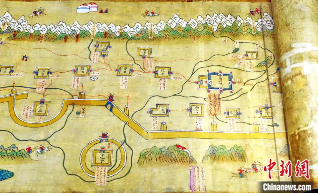 当时,梵蒂冈人类学博物馆尚在筹办阶段,馆长带我进到博物馆筹备处的地下室,开灯拿出一个长卷卷轴。随着卷轴徐徐展开,我高兴得差点跳起来。这就是我一直在寻找的《长城图》。长城图卷,从右卷首嘉峪关向左徐徐展开,分别画出肃州城、甘州城、凉州城、宁夏城、榆林城、偏关段长城,最后截止在左卷尾山西大同城。