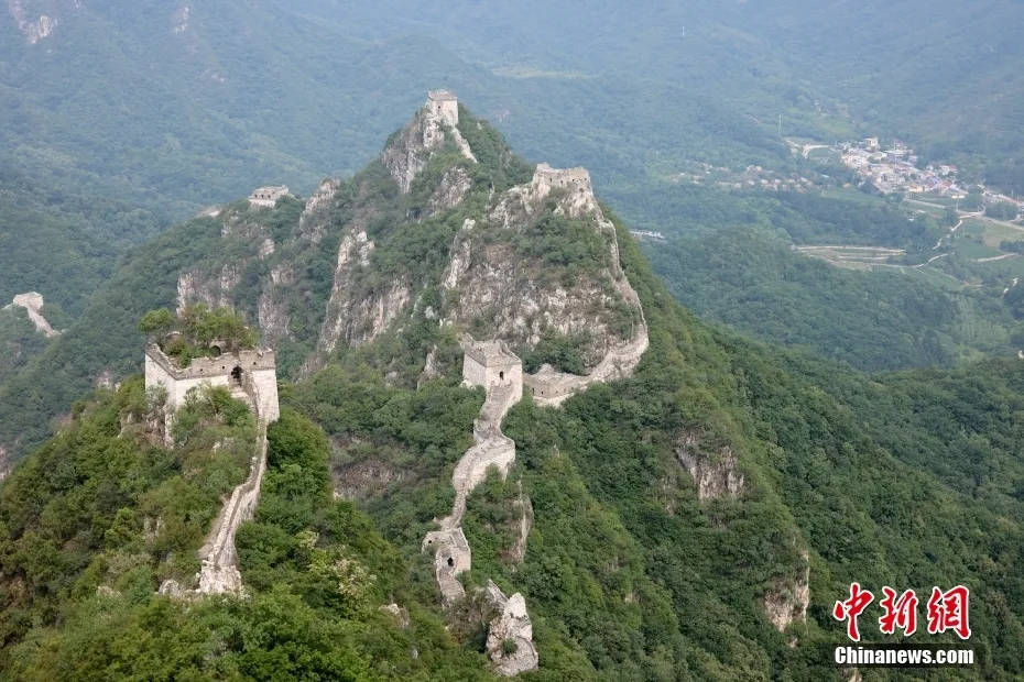 7月4日拍摄的北京怀柔箭扣长城,参与长城修缮的工匠们住在长城脚下的村落,每日往返于此。中新社记者 张宇 摄