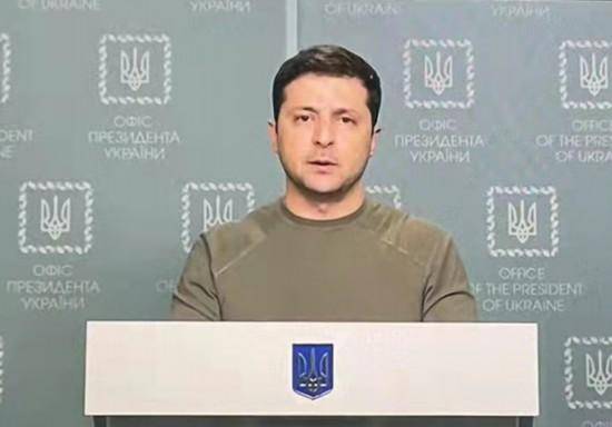 这是2022年2月25日在乌克兰基辅拍摄的乌总统泽连斯基发表讲话的视频画面。新华社发(波多普列洛娃·娜佳摄)