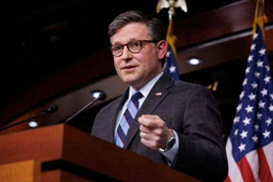 2月6日,在美国华盛顿,美国国会众议院议长迈克·约翰逊举行记者会。新华社发(亚伦摄)
