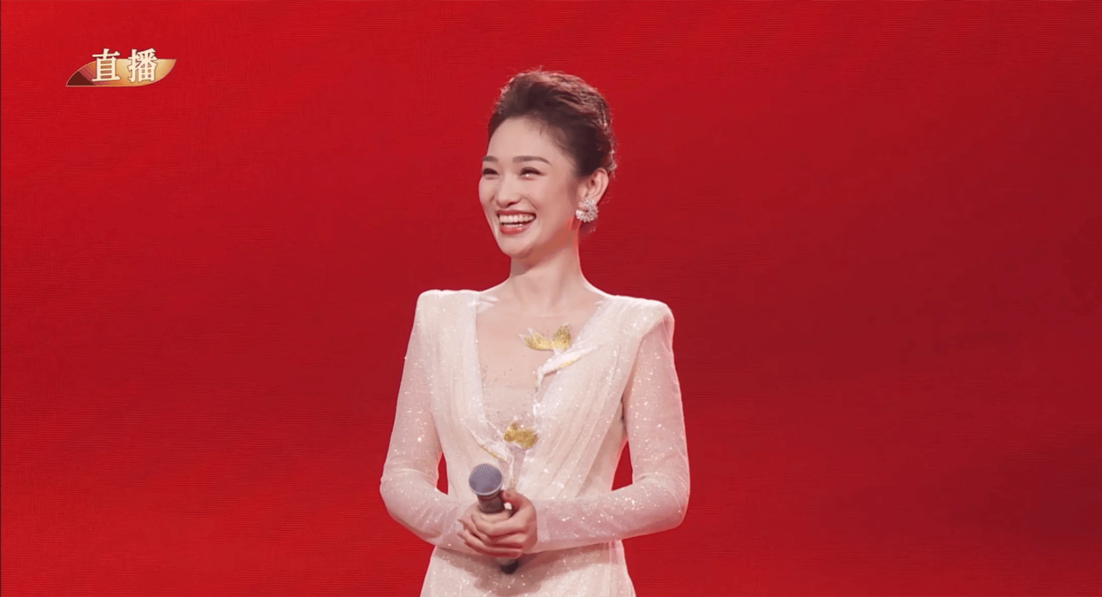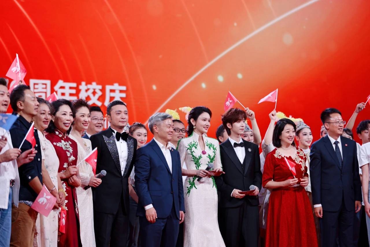中传校庆晚会,龙洋在众多主持人中抢风头,穿春晚旧礼服效果炸裂