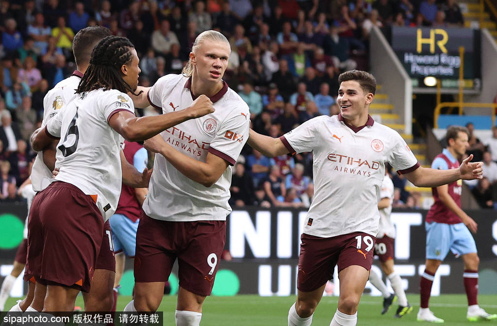 比赛开始4分钟不到,熟悉的一面的再次来临,哈兰德又进球了。德布劳内右路传中,后点的罗德里头球摆渡,哈兰德抢在后卫出脚解围前攻门得手,英超新赛季首球就此诞生,哈兰德也给升班马伯恩利一点小小的震撼。第35分钟,哈兰德再次收获进球,当时沃克右路低平球传到禁区内,阿尔瓦雷斯再传,哈兰德左脚爆射,皮球直挂死角。比赛上半场还未结束,哈兰德就似乎直接终结了比赛。伯恩利也算是哈兰德最喜欢的球队之一了,上赛季的足总杯面对曼城时,伯恩利的球门就曾被哈兰德攻破了三次。