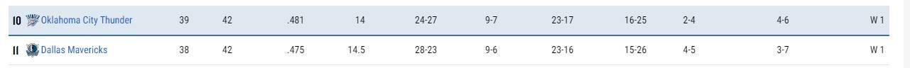 本以为独行侠已经提前结束本赛季了,但雷霆一波三连败还是给了东欧组合曙光。在今天雷霆拿下残阵爵士之后,留给独行侠的机会已经不多了。由于胜负关系劣势,独行侠必须在剩余两场比赛中全部取胜,同时雷霆在周一收官之战输给灰熊,东欧才有可能继续本赛季的征程。