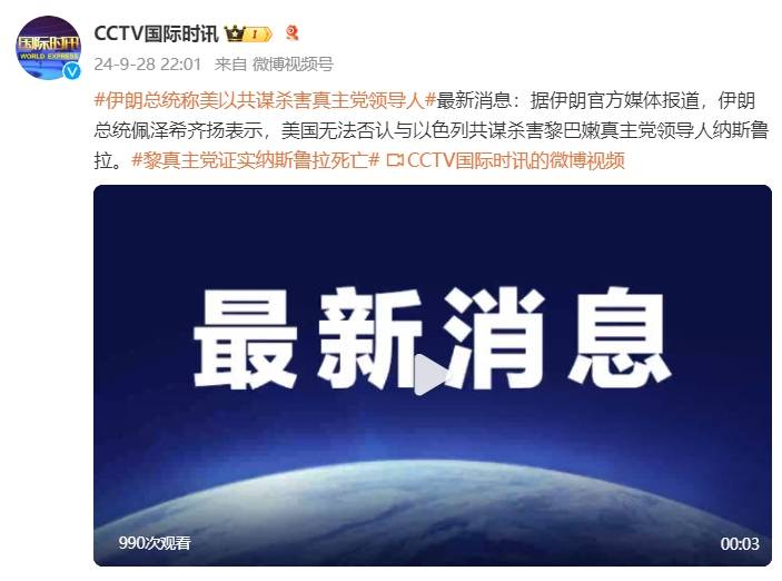 最新消息:据伊朗官方媒体报道,伊朗总统佩泽希齐扬表示,美国无法否认与以色列共谋杀害黎巴嫩真主党领导人纳斯鲁拉。