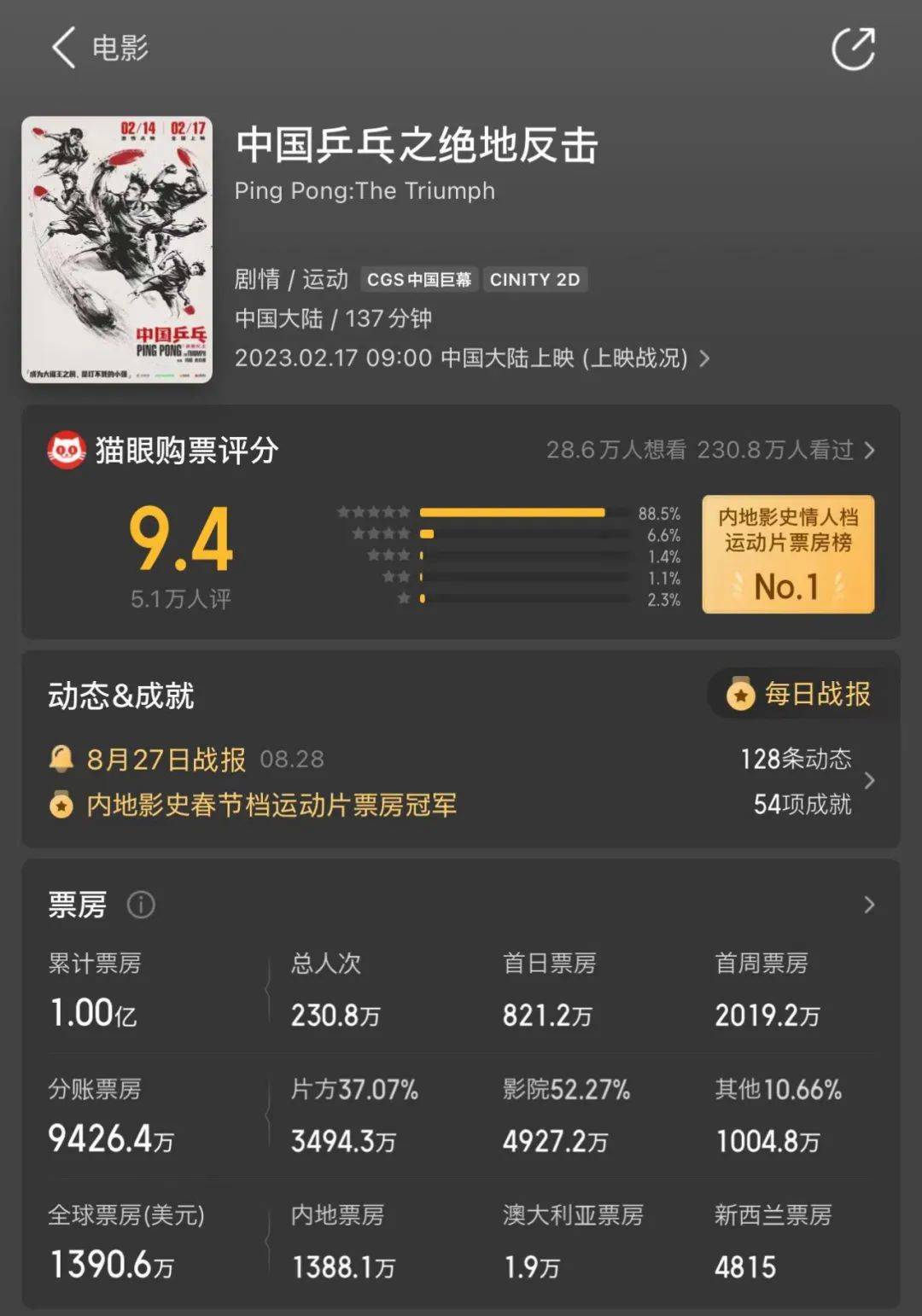 2023年的《中国乒乓之绝地反击》成了压垮恒业影业的最后一根稻草。