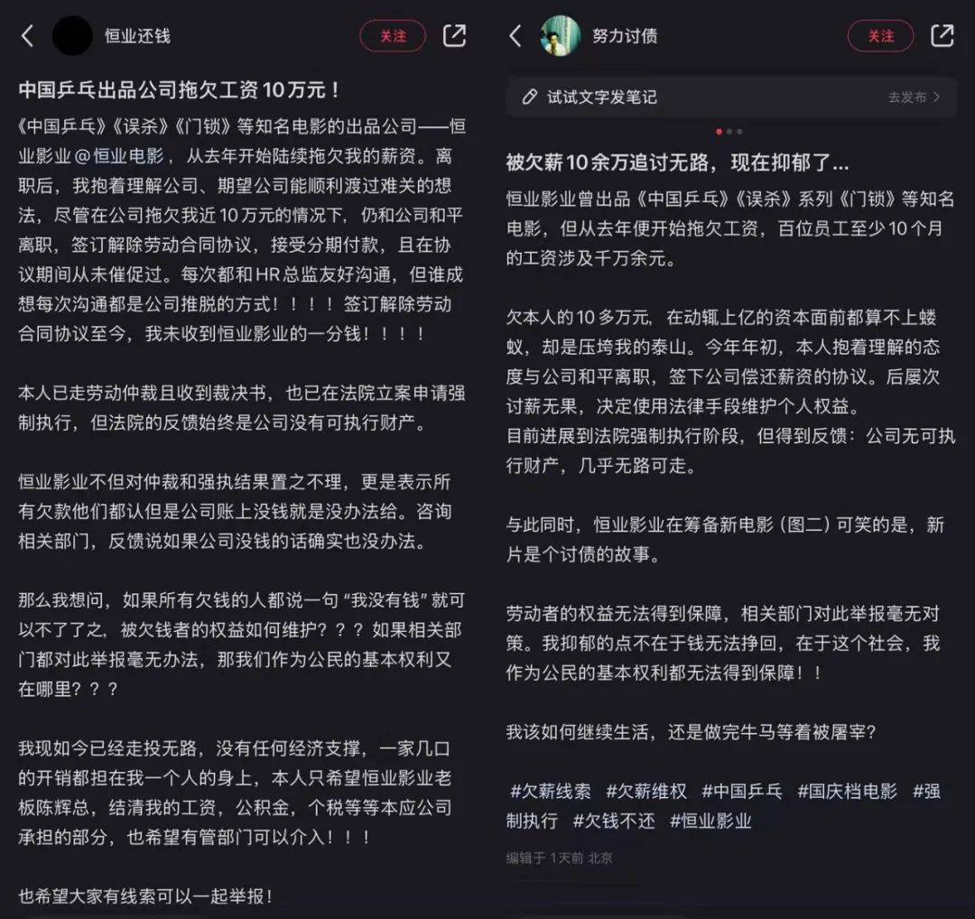 这几则帖子的曝光,也让行业注意到了沉寂许久的恒业影业负债累累的现状。
