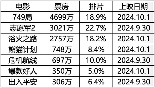 不出意外,国庆档最终可能更多寄望于《749局》跟《志愿军2》,而这两部也是最能承接海量路人群体的项目。大盘的增量,大盘的上限,很可能要取决于这两部的表现。后面的腰部能否站出来,从今年国庆档的格局来看,确实存在着很大的难度。