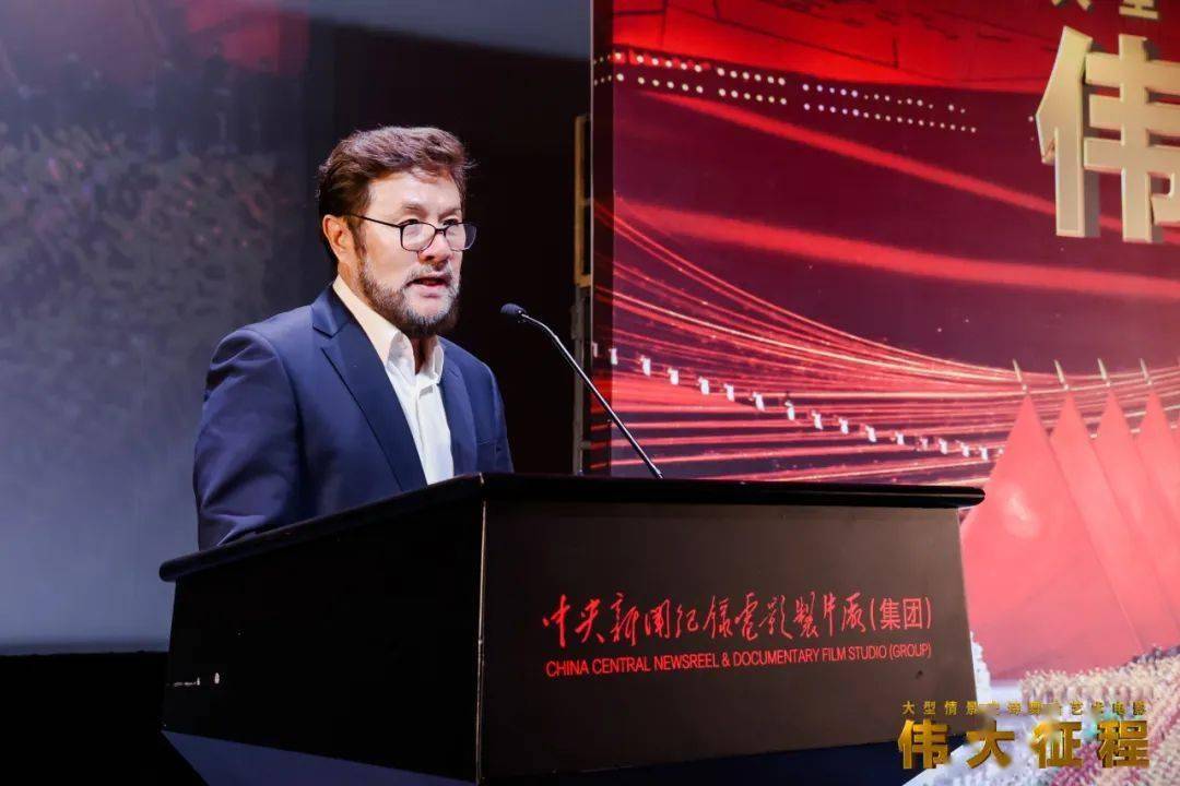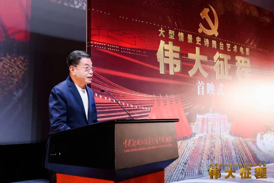 白轶民在致辞中表示,《伟大征程》以其思想性、艺术性和观赏性相结合,成功完成了从实景演出到电影银幕的艺术转换,成为电影史上一部不可多得的佳作。作为影片的发行方,华夏电影为影片的发行和推广倾注了大量心血。我们不仅希望观众感受到宏大的历史叙事,更希望让社会各界人士都能通过欣赏文艺佳作的方式,切身感受到建党百年的艰辛历程和辉煌成就,唤起广大人民对党和国家的深情厚谊,激发更多人参与到中华民族伟大复兴的征程中来。