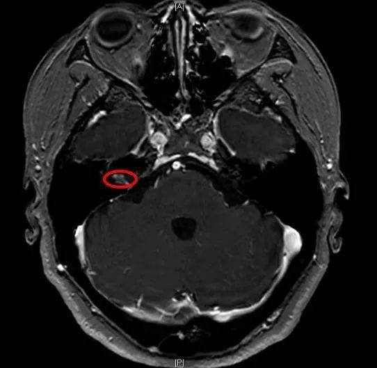 图为核磁影像下内听道肿瘤