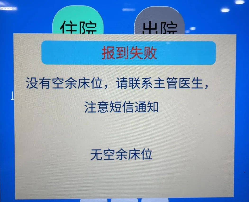 住院报到后,若报到机提示“无空余床位”,即为报到失败,需特别关注短信提醒。