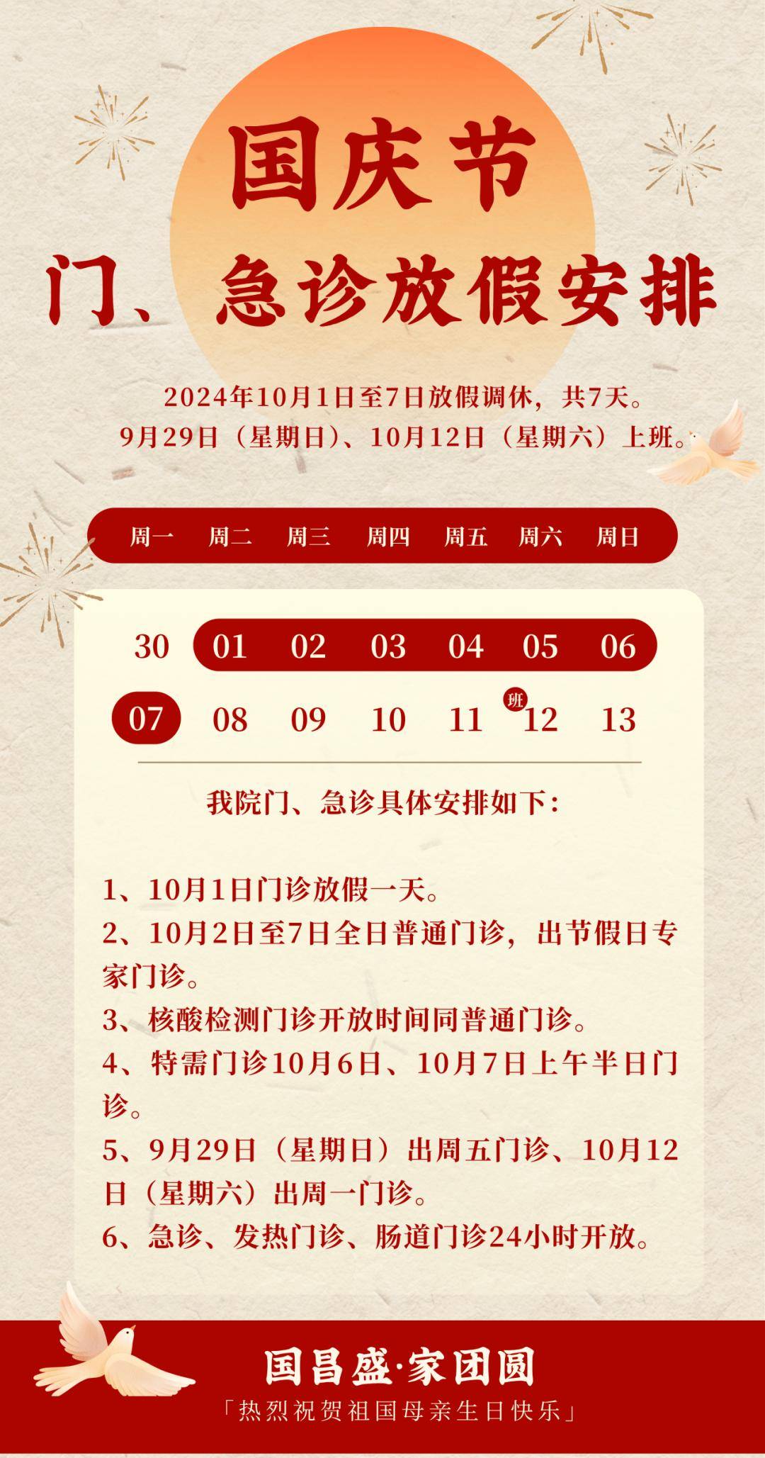 2024年 “国庆节”门、急诊放假安排