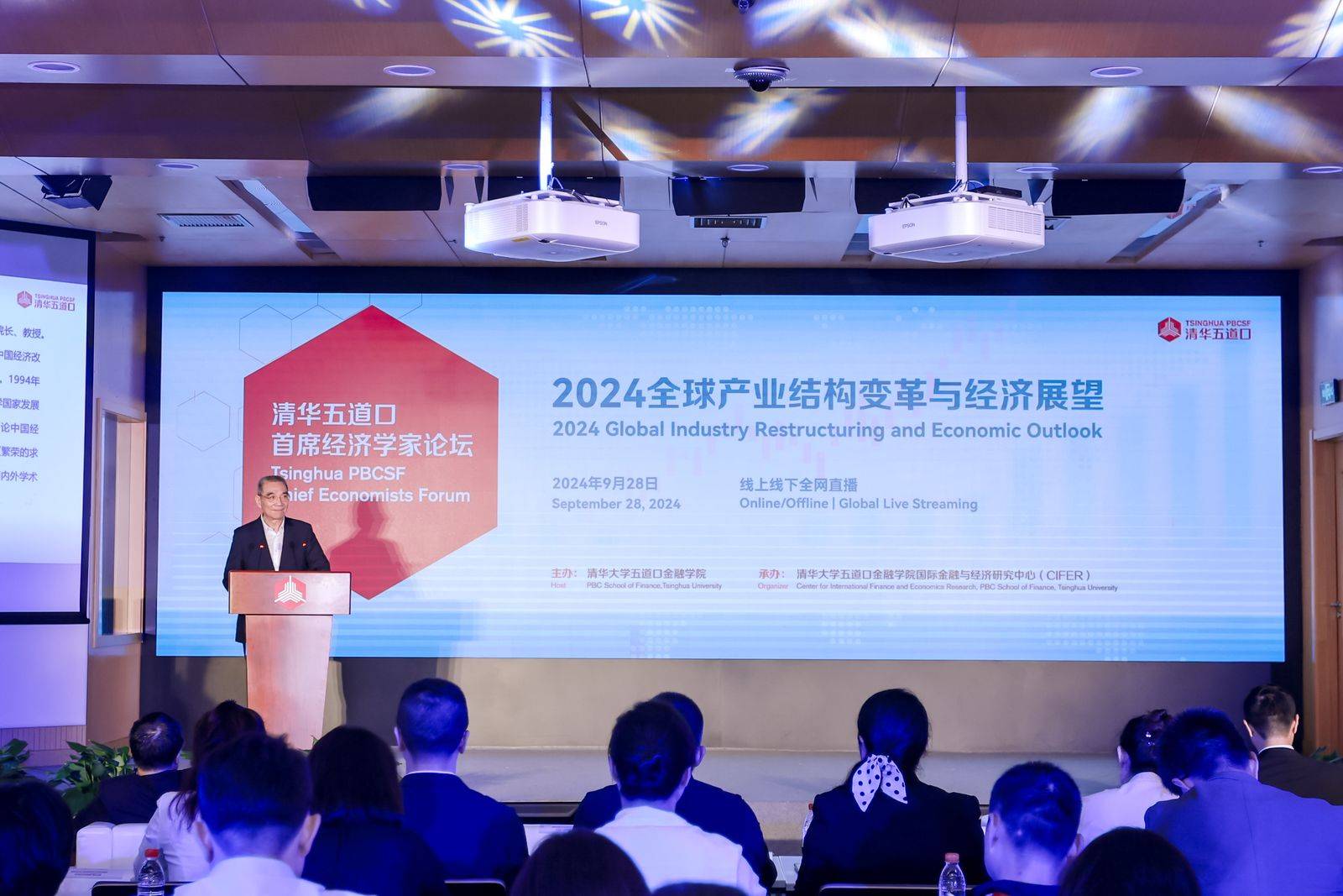 9月28号,以“全球产业结构变革与经济展望”为主题的2024清华五道口首席经济学家论坛在清华五道口学院举办,北京大学新结构经济学研究院院长、教授林毅夫发表演讲。