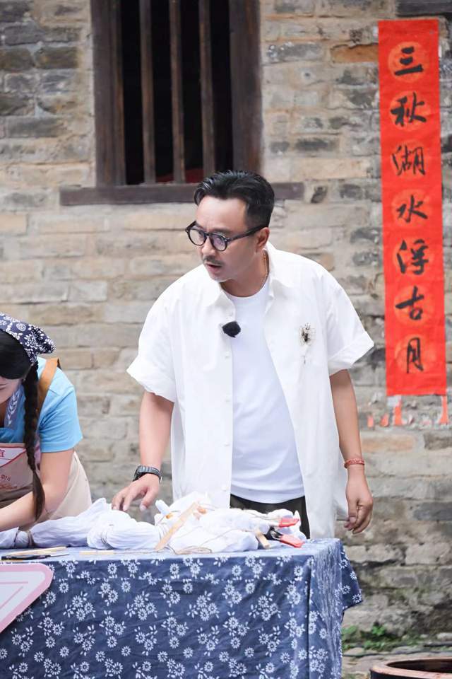 对于传统文化,汪涵向来充满浓厚兴趣。在节目现场,汪涵也变身手艺人,自己动手尝试制作手绢。由于制作蓝染需要把布匹卷起来,加上认真学习的样子,主持人靳梦佳也忍不住“吐槽”:“涵哥是实名卷王。”汪涵也自我调侃:“我真的太卷了,连布的四个角都卷起来了。”姚晨则全靠手感,尝试蓝染技艺。两个人都制作出了自己的创意蓝染作品,获得了现场众人的一致称赞。