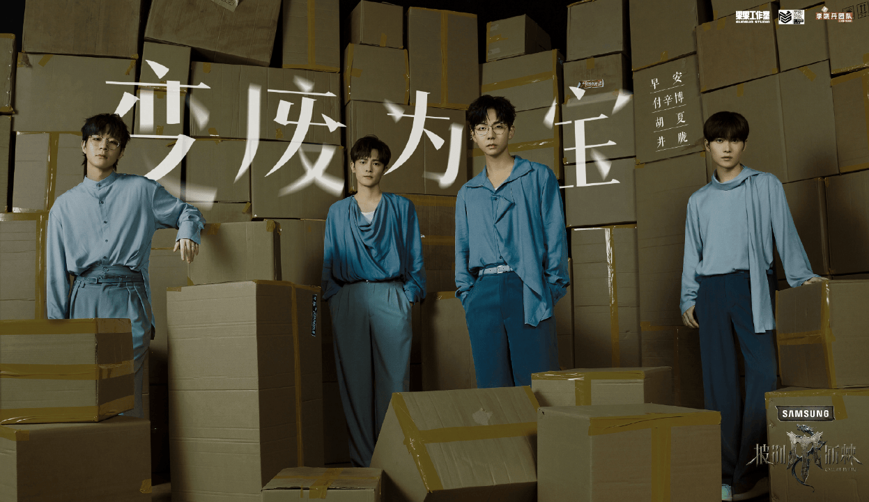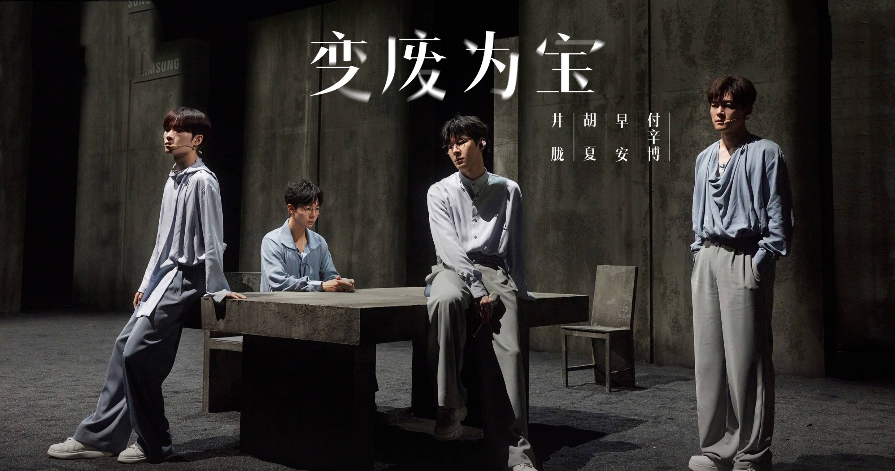 2.付辛博、胡夏、早安、井胧《变废为宝》。颓废感服饰造型很加分,歌曲同样适合他们声线。