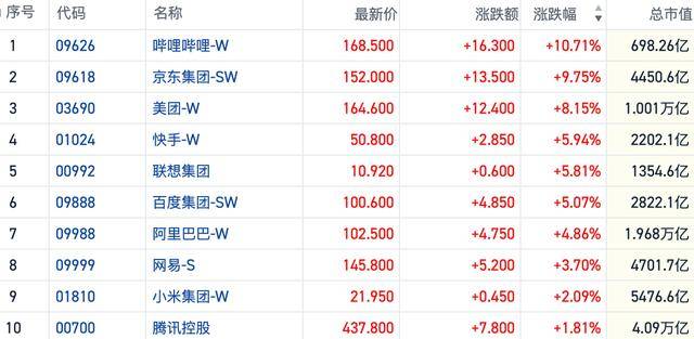 盘面上,今日核心科技股继续强势,京东涨超9%,美团、阿里巴巴、百度、腾讯均录得连涨行情。