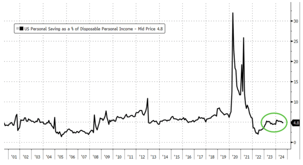 8月,储蓄率降至4.8%。相比之下,7 月份的储蓄率(修订前)为 2.9%。