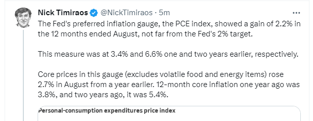 “新美联储通讯社”Nick Timiraos评价本月PCE数据时表示,美联储青睐的PCE指标距离美联储目标不远了: