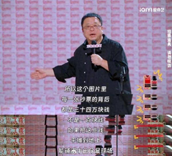 他在脱口秀中告知观众已还完8.24亿元债务,还把8.24亿元人民币图片拼接在一起,直观展示给大家。