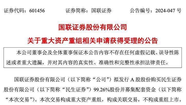 价值约300亿元的国联证券收购民生证券进入监管审核阶段。