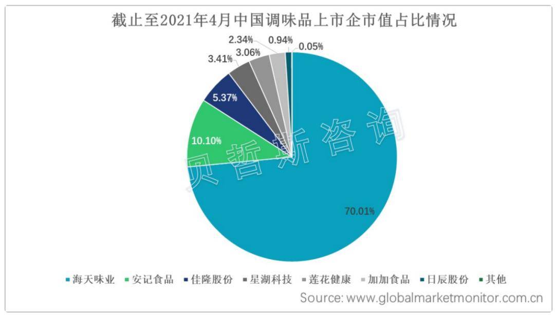 即便如此,海天味业行业一哥的地位短期内依然无法撼动。截至目前海天味业仍是国内酱油第一大企业,贝哲斯咨询数据显示,截至2024年4月,海天味业占据中国调味品上市企业市值70.01%的市场比重;安记食品以10.10%的份额排名第二;佳隆股份市值市场占比5.37%。
