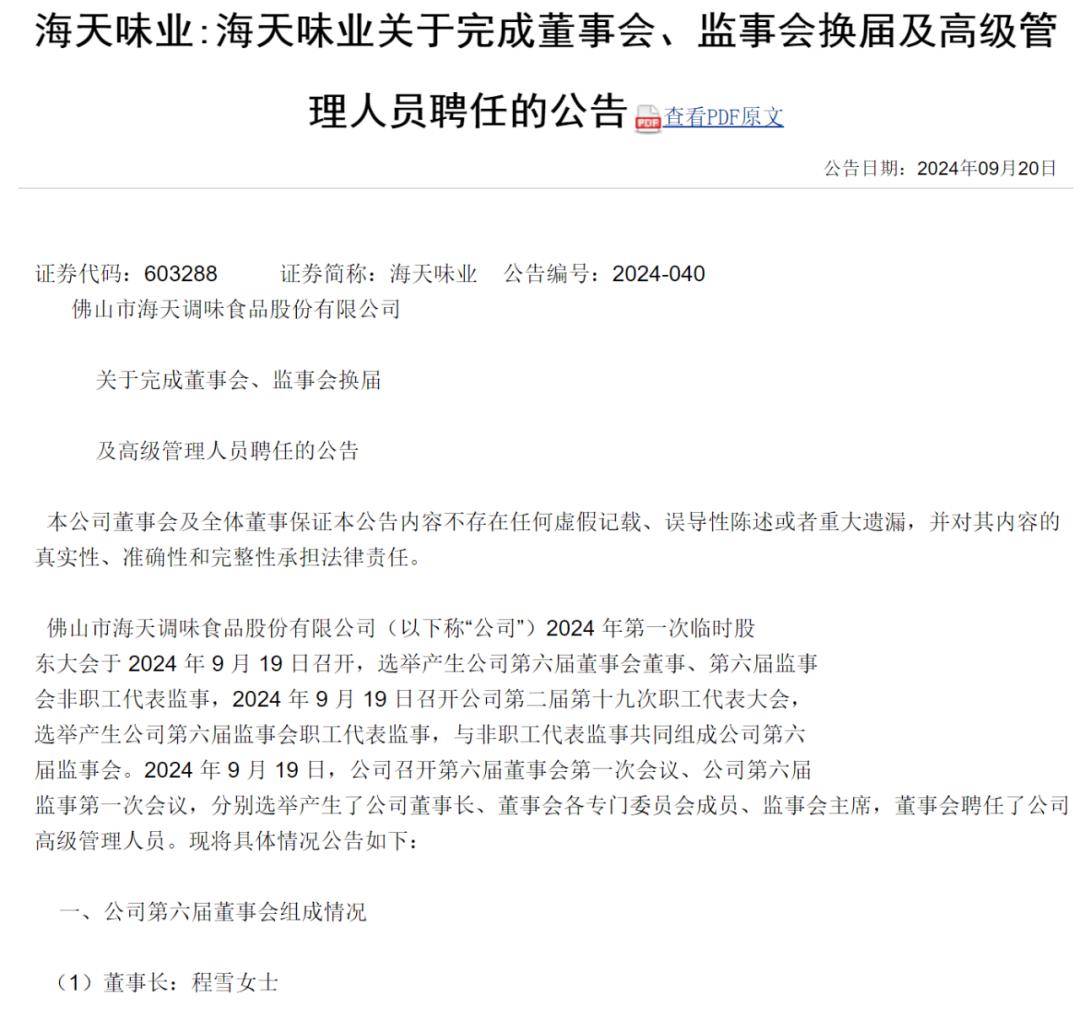 9月20日,海天味业一条高层变动公告引发广泛关注。