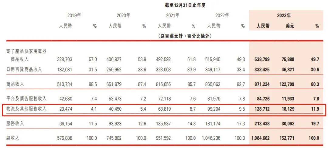 发达的供应链,降低交易成本,提升商品流转效率,创造更多的商业价值。2019年,京东物流收入234.7亿元,2023年则为1287亿元。