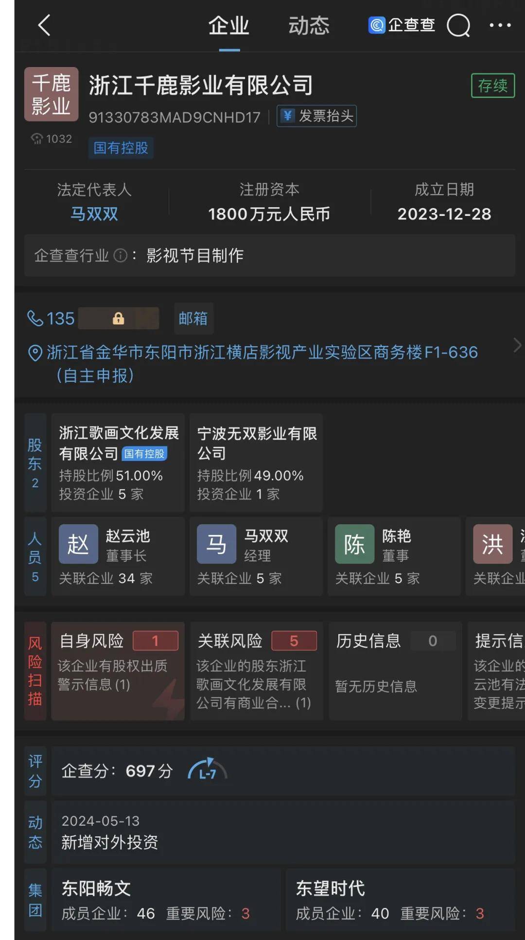 其中,福建恒业影业存在股权出质、失信被执行人、被执行人、限制高消费、股权冻结、司法案件等多项负面记录。