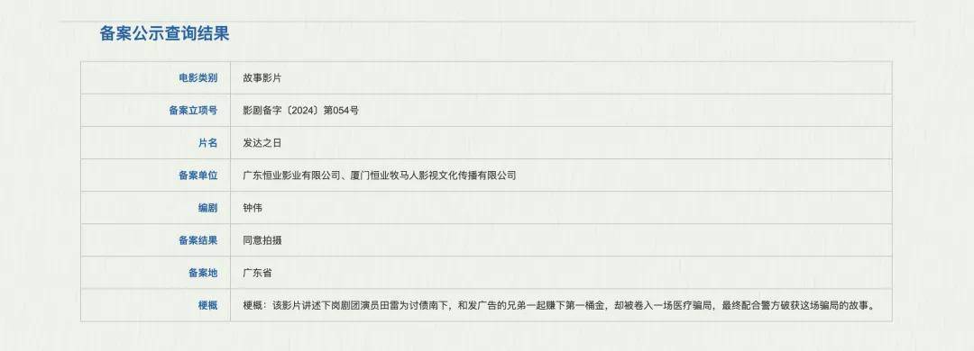 令人啼笑皆非的是,恒业影业一边深陷欠薪风波,一边却仍在筹备新片《发达之日》,讲述的恰恰是一个讨债的故事。