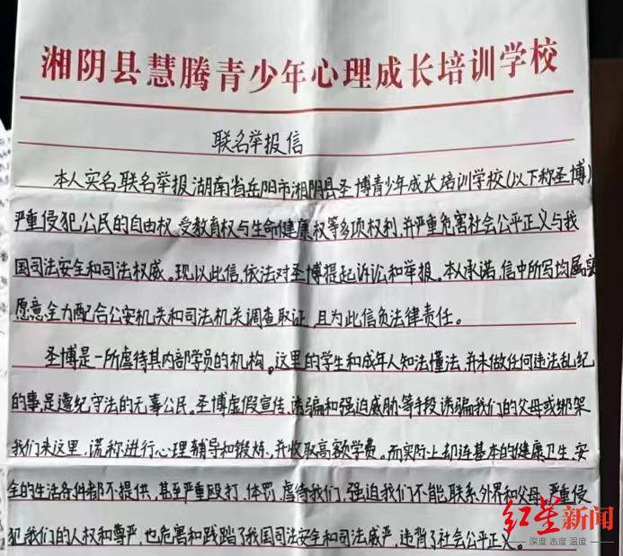 天眼查显示,湘阴县圣博青少年心理成长培训学校曾用名湘阴县慧腾青少年成长训练营,成立于2008年,业务范围是“心理辅导、行为训练及青少年成长内容”,法定代表人为林某,地址是湖南省岳阳市湘阴县袁家铺镇沙湖村原沙湖小学。8月31日,记者致电该校多个公开电话,均未接通。