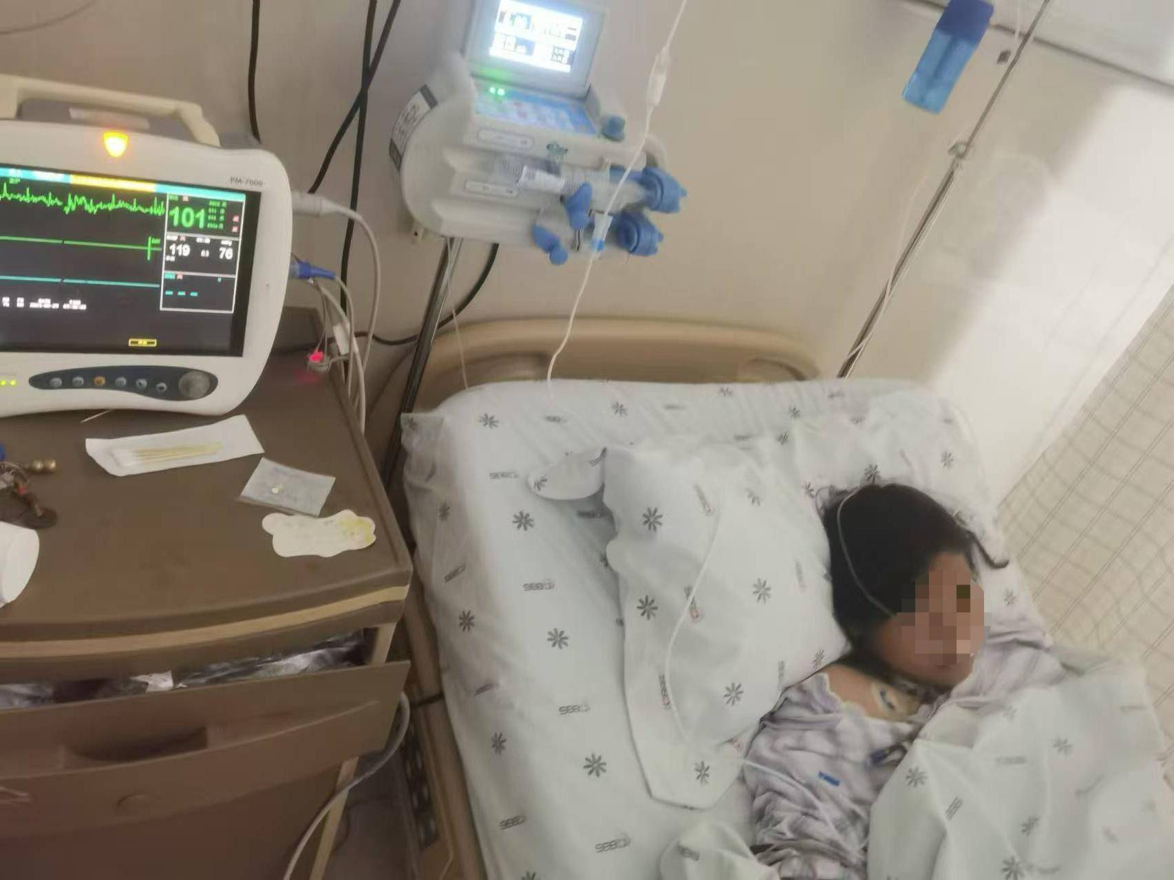 王先生女儿躺在病床上治疗。图/受访者提供