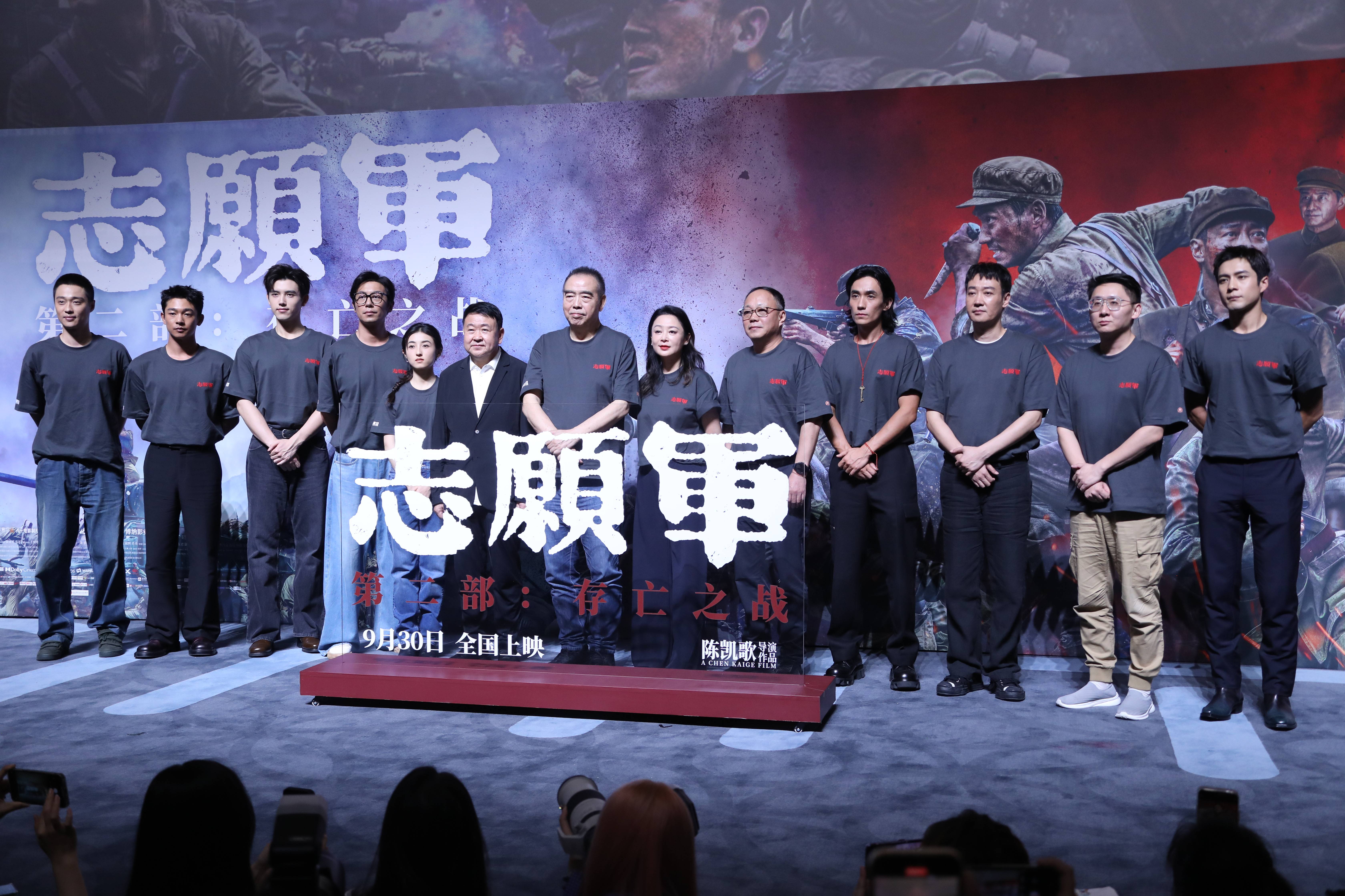 搜狐娱乐讯 (哈麦/文 阿远/图/视频)9月27日,电影《志愿军:存亡之战》在北京首映,导演陈凯歌,主演朱一龙、辛柏青、张子枫、陈飞宇等出席映后见面会和观众交流。